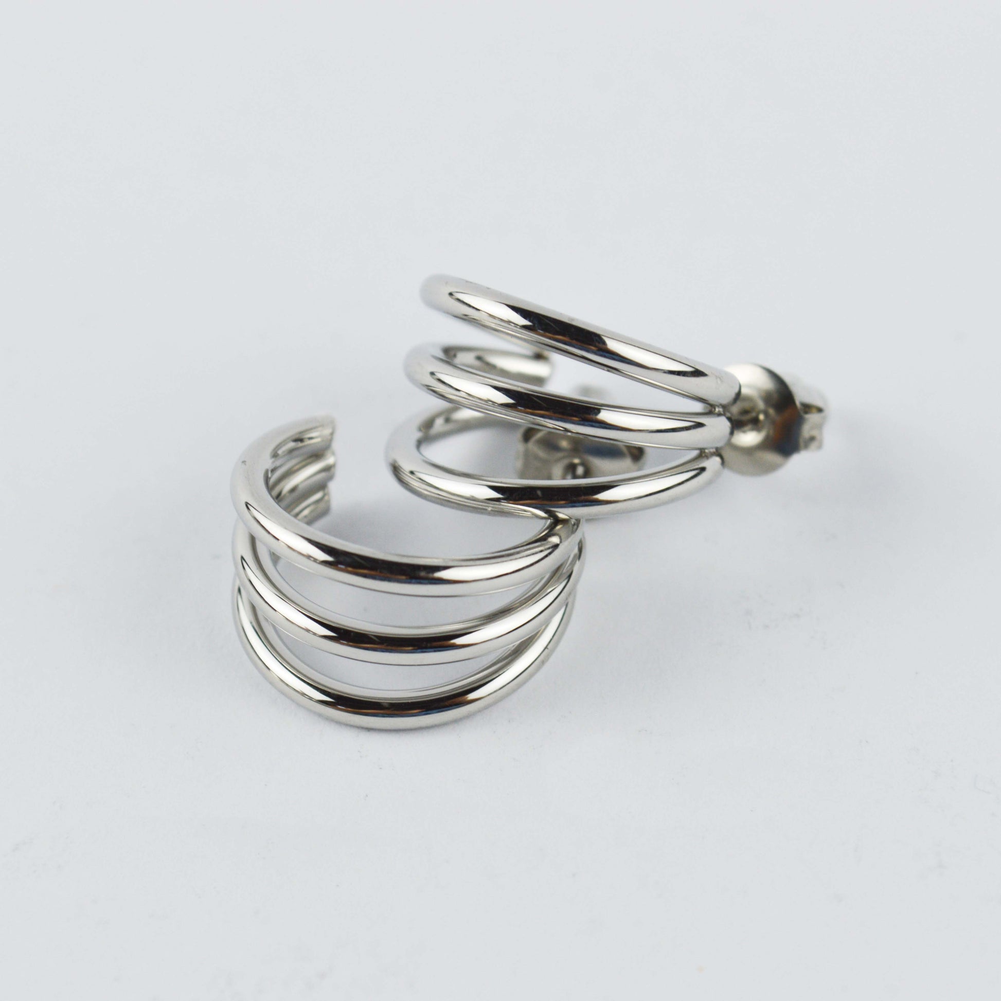 Estos aretes de diseño abierto son la combinación perfecta de moda y funcionalidad. A pesar de su apariencia voluminosa de triple banda, están diseñados para ser ligeros y cómodos.