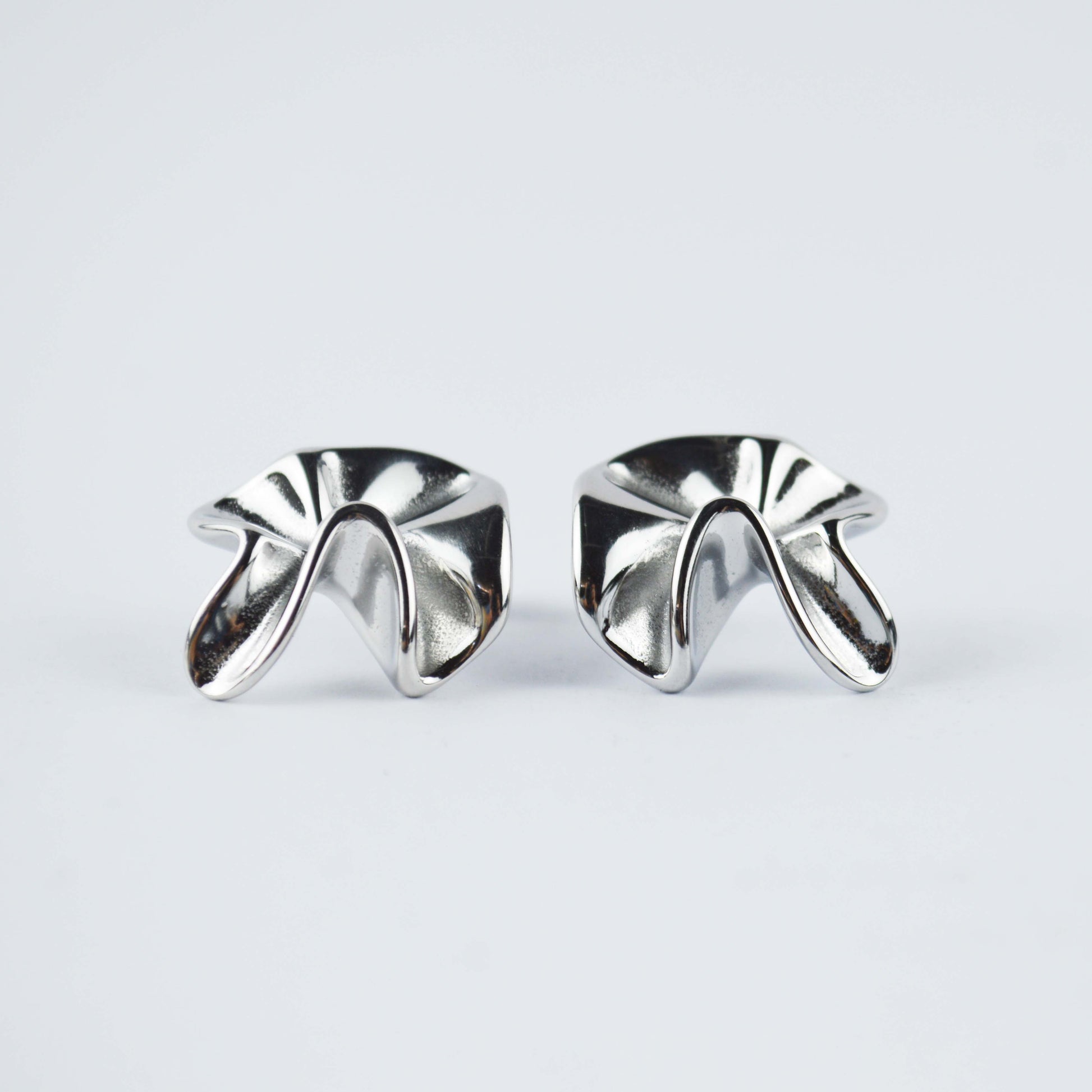 Aretes modernos con un diseño de abanico geométrico que captura la luz a la perfección. Elaborados en acero inoxidable, estas piezas presentan líneas fluidas que crean un efecto de movimiento y sofisticación. Son el accesorio ideal para un look pulido y contemporáneo, añadiendo un toque de vanguardia a cualquier conjunto, ya sea casual o de noche. ¡Un statement de estilo!
