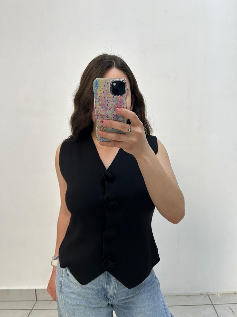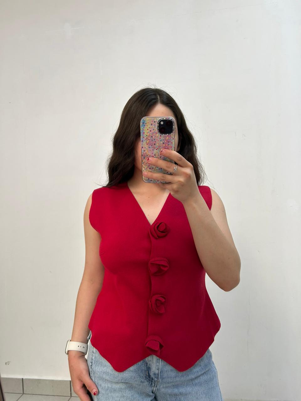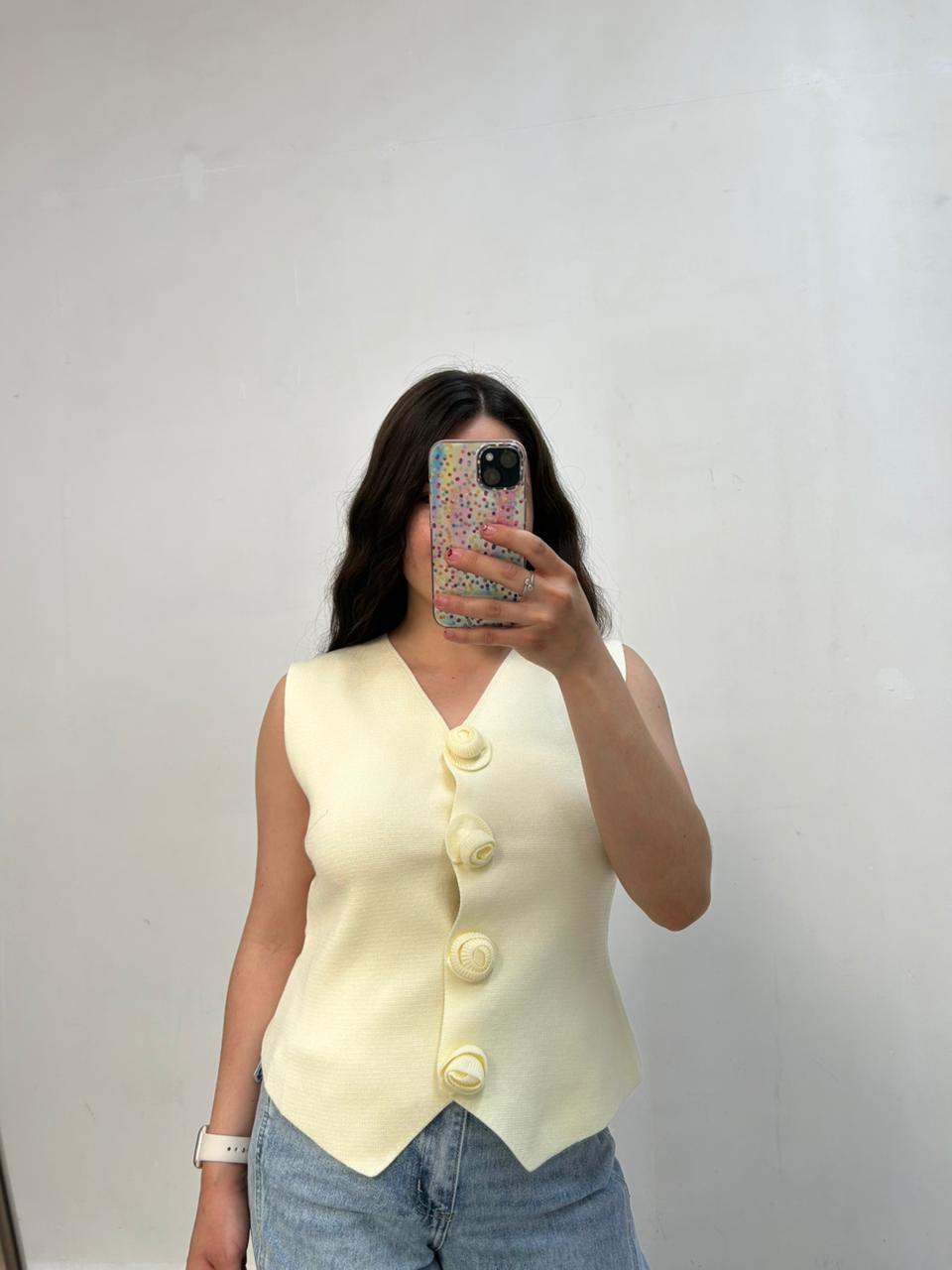 Chaleco Con Botones De Rosas En Tejido Fresco