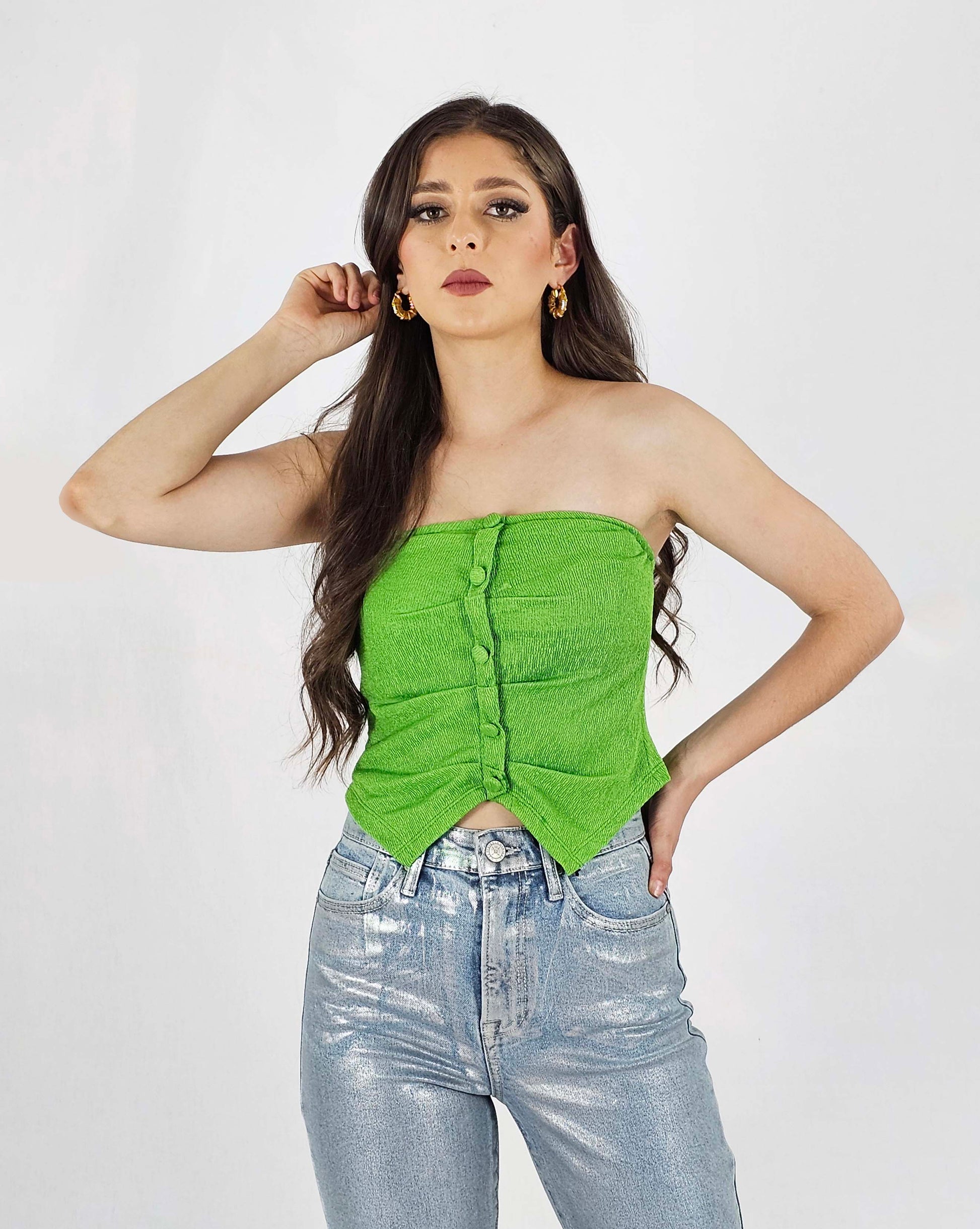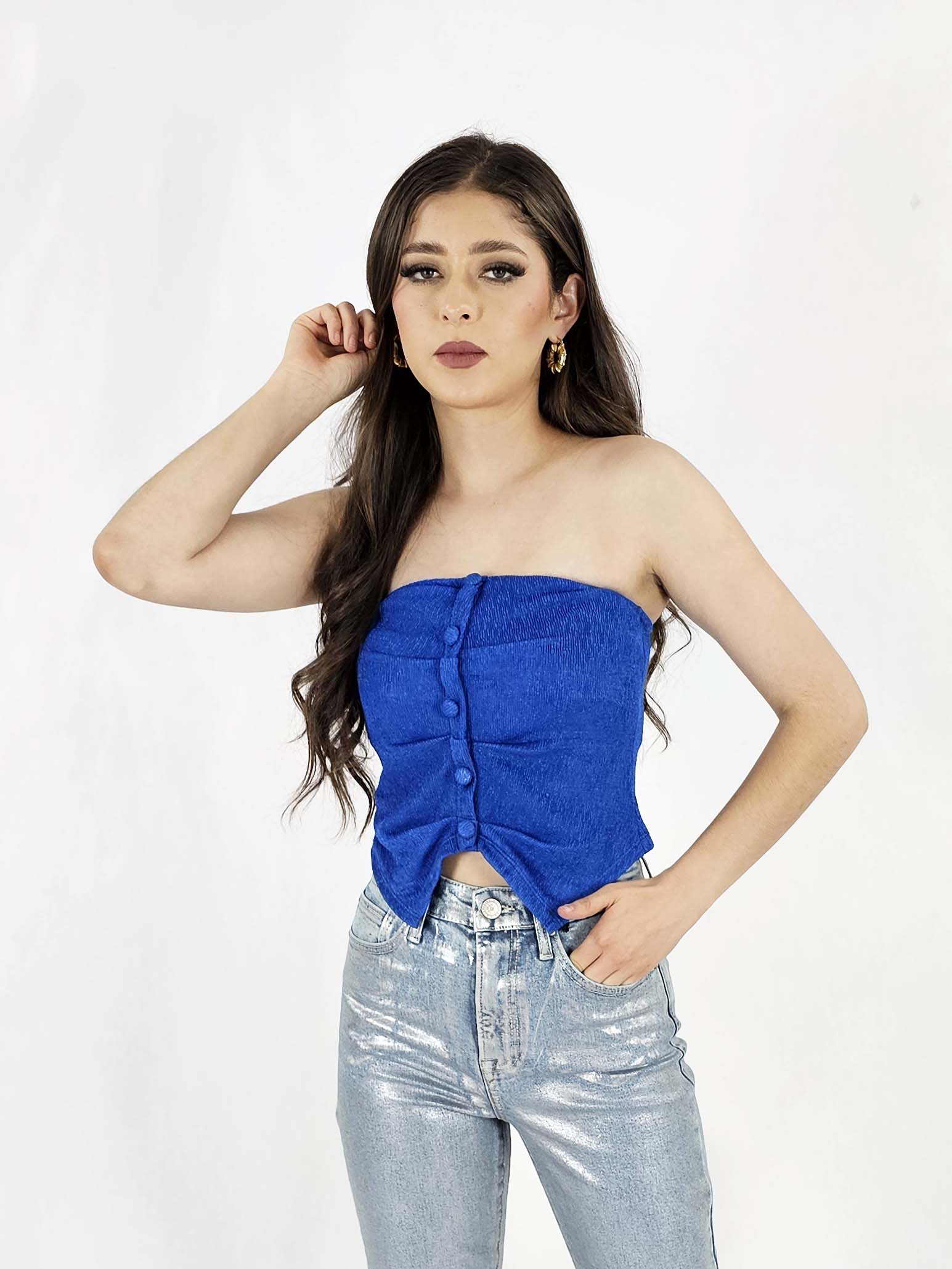 Top plisado con botones estéticos en 3 distintas tallas (S, M, L)